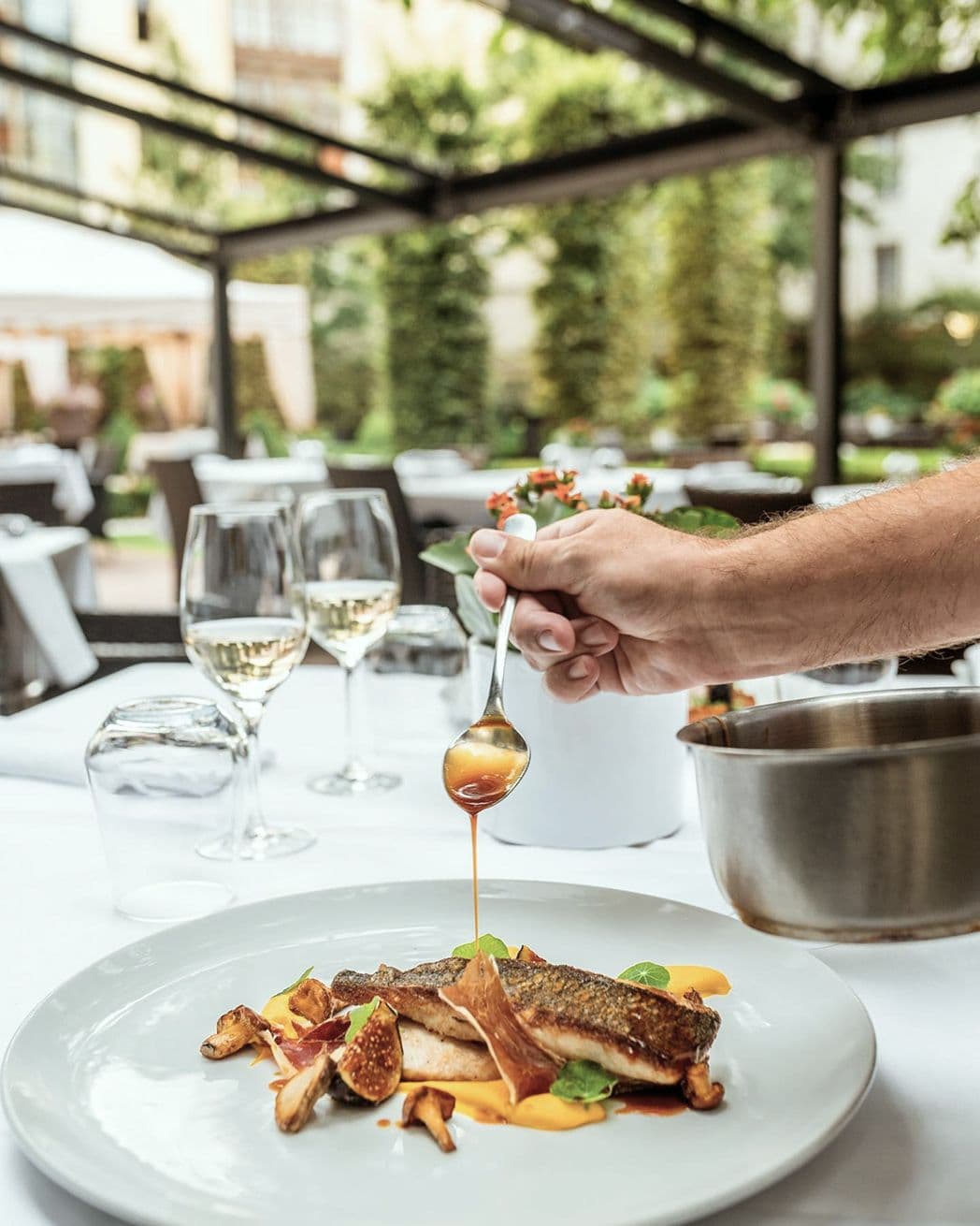 Guests are invited to discover the restaurant’s signature dishes, including contemporary interpretations of Czech classics, carefully selected meat specialties, and desserts inspired by regional flavors. The unique connection between the elegant interior and the expansive inner-courtyard garden allows for refined dining both indoors and on the garden terrace — just steps away from the Powder Tower, yet worlds apart in atmosphere.